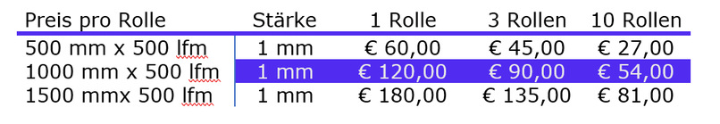 Stärken: 1-10 mm, Breiten: 500-2.000 mm, Längen: 20-500 lfm