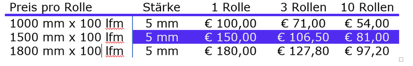 Für andere Dimensionen oder bei größeren Abnahmemengen bitten wir um Ihre Anfrage.