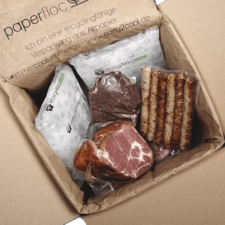 Kühlpads bestehen aus PE Folie (Lebensmittelecht) welche aus recycelten Material besteht und wieder zu 100% recyclebar ist.